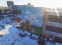 Картина в стилистике стрит-арта от художника Р. Салемгараева появилась на фасаде одного из зданий бывшей промзоны, где сейчас ведется строительство комфортабельного жилого комплекса «Кварталы 21/19».